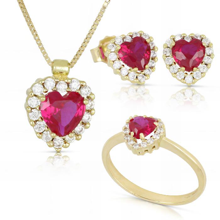 Un regalo perfetto per celebrare un momento importante. Questa parure composta da un anello, un pendente e orecchini con pietre rosse in oro giallo con il suo design raffinato e i materiali pregiati, è un ricordo che durerà nel tempo